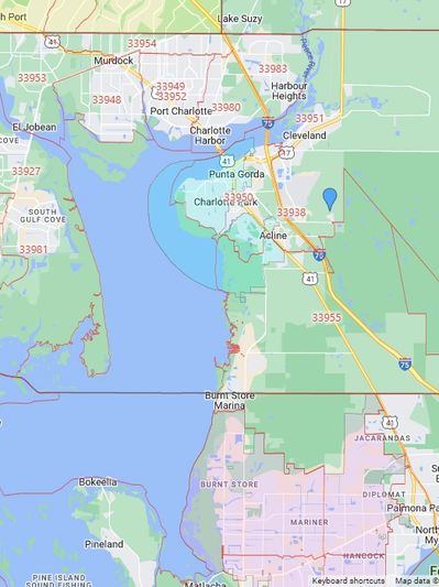 Covers areas to the east of Punta Gorda, including rural regions like Babcock Ranch and parts of the Charlotte Ranchettes. Babcock Ranch is an eco-friendly, solar-powered community, while the Ranchettes are more rural, large-lot properties.